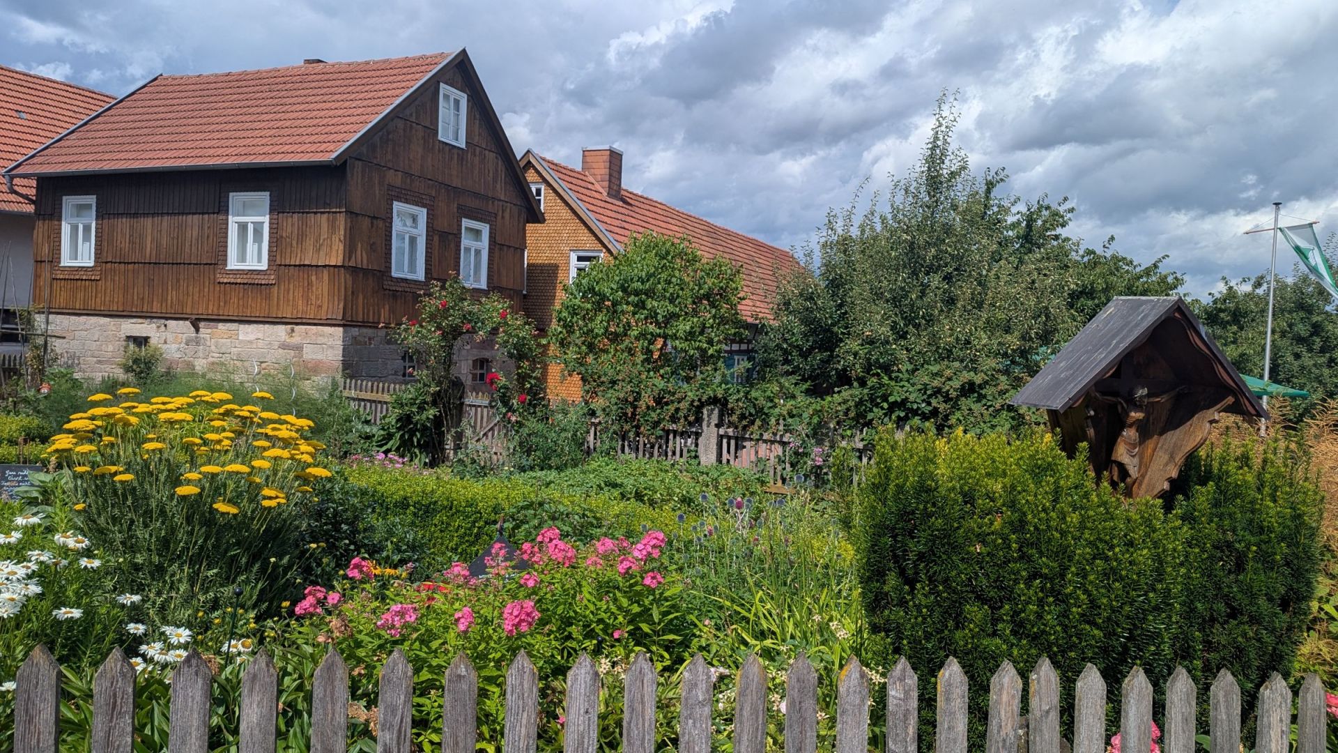 alten Bausubstanz mit einstöckigem Fachwerkhaus, angegliederter Scheuer (Scheune) mit integriertem Schweinestall, Viehstall und Nebenhaus sowie dem Gras- und Pflanzengarten.