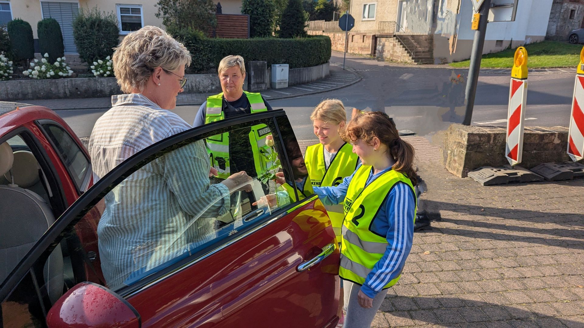 Pünktlich zum Beginn des neuen Schuljahres haben Kinder der 4. Klassen der Fliedetalschule bei der Aktion „Blitz für Kids“ grüne und gelbe Karten an Autofahrer verteilt.