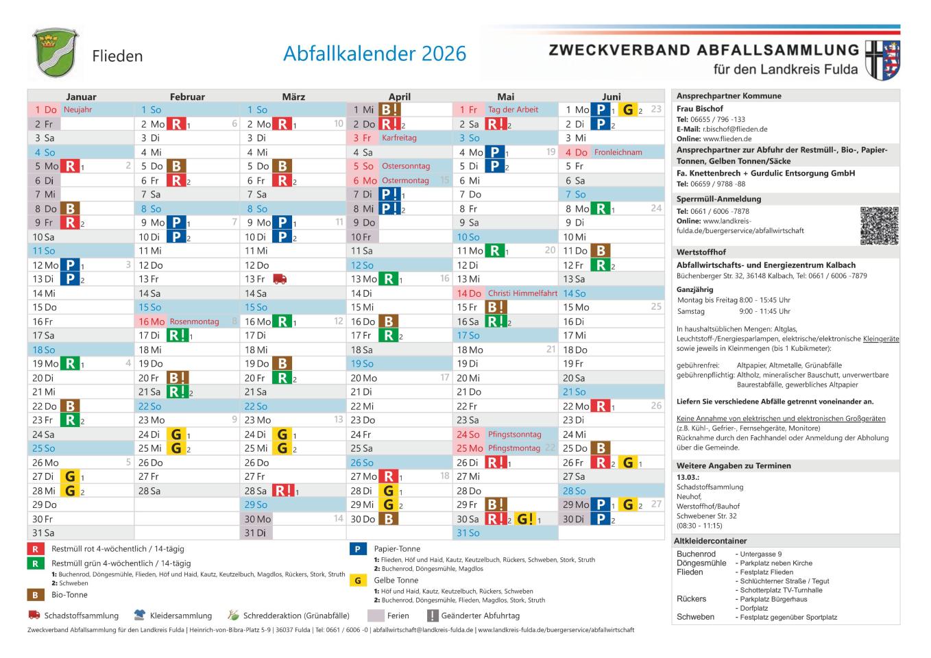 Mit der Ausgabe des Wochenblattes in der 51. Kalenderwoche (19.12.2025) erhalten alle Haushalte den neuen Umweltkalender für das Jahr 2026 in Papierform.